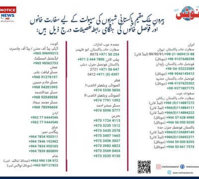 بیرونِ ملک مقیم پاکستانی شہریوں کی سہولت کے لیے سفارت خانوں اور قونصل خانوں کی…