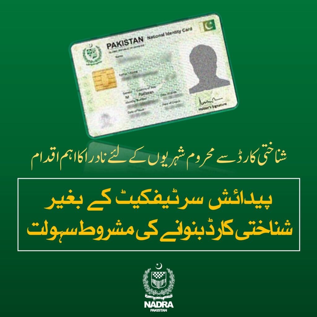 اسی تناظر میں نادرا نے پہلی بار رجسٹریشن کے لیے ایک مخصوص سہولت متعارف کرائی ہے، جو 31 دسمبر 2026 تک مؤثر رہے گی۔ اس طریقۂ کار کے تحت ایسے افراد جن کے پاس مقامی حکومت کا کمپیوٹرائزڈ پیدائش سرٹیفکیٹ دستیاب نہ ہو، انہیں تصدیق کی شرائط پوری ہونے پر کمپیوٹرائزڈ قومی شناختی کارڈ جاری کیا جا سکے گا۔ یہ سہولت نادرا آرڈیننس اور قومی شناختی کارڈ کے مروجہ قواعد و ضوابط کی ان شقوں کے تحت دی جا رہی ہے جو نادرا کو رجسٹریشن میں اضافے کی غرض سے مخصوص حالات میں متبادل تصدیقی طریقہ کار کے ذریعے قومی شناختی کارڈ جاری کرنے کی اجازت دیتے ہیں۔
